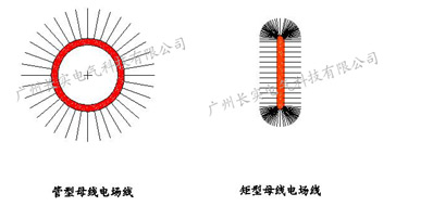由圖可見,管型母線電場(chǎng)線徑向分布均勻,而矩型母線電場(chǎng)線則大量集中于邊角上,因此管型母線更易于控制電位、限制電場(chǎng)。我公司制造的管型母線以電容屏構(gòu)成一串同軸圓柱電容器,其徑向軸向電壓分布均勻,耐壓等級(jí)能與交聯(lián)電纜相媲美。也由于電的集膚特性,使電流密集分布于環(huán)型截面中,因而又使管型母線比電纜母線能承載更大的電流。